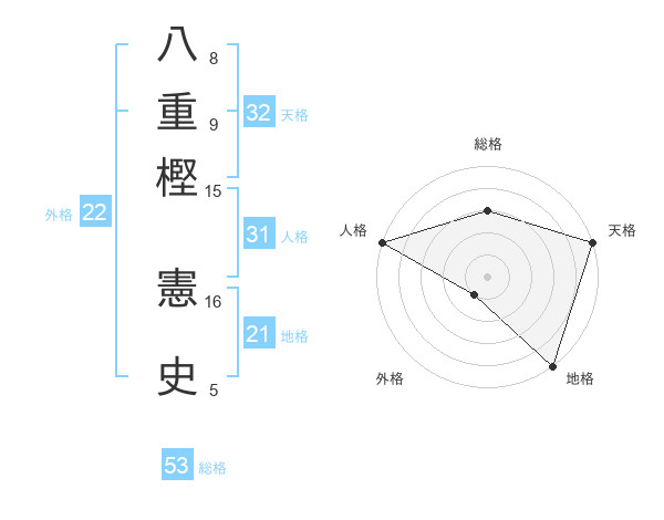 八重樫 憲史さんの総格は53画の3点!