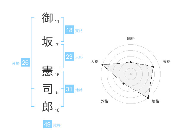 御坂 憲司郎さんを姓名の画数から五運を鑑定