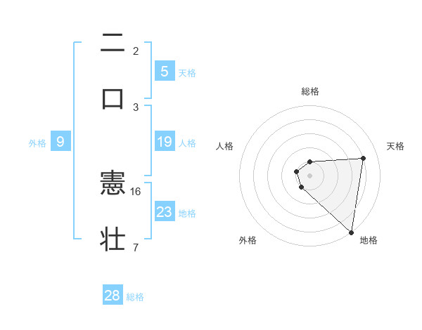 二口 憲壮さんを姓名の画数から五運を鑑定