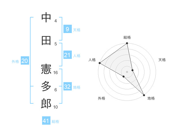 中田 憲多郎さんを姓名の画数から五運を鑑定