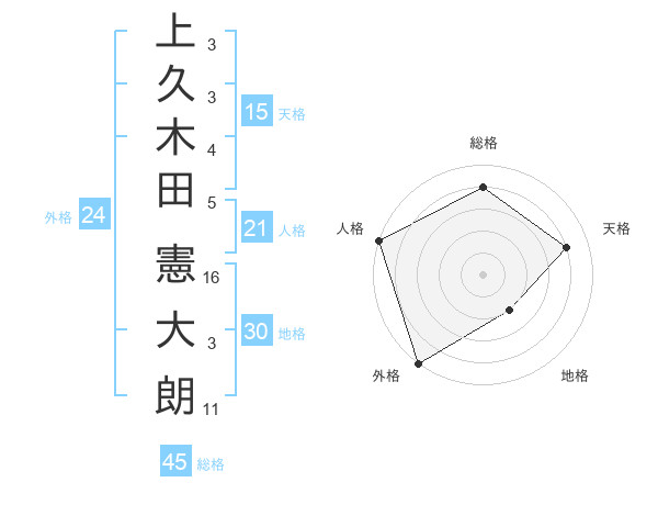 上久木田 憲大朗さんの総格は45画の4点!