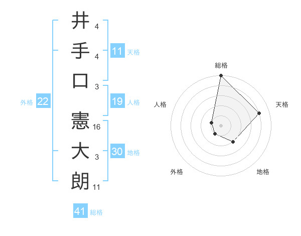 井手口 憲大朗さんを姓名の画数から五運を鑑定