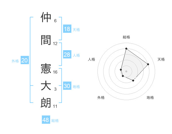 仲間 憲大朗さんを姓名の画数から五運を鑑定