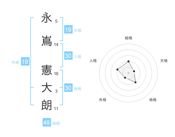 永嶌 憲大朗さんを姓名の画数から五運を鑑定