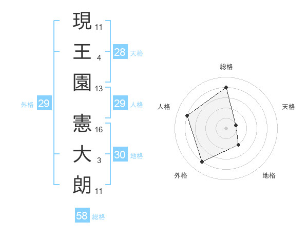 現王園 憲大朗さんの総格は58画の4点!