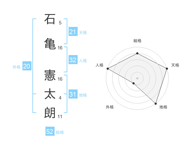 石亀 憲太朗さんを姓名の画数から五運を鑑定
