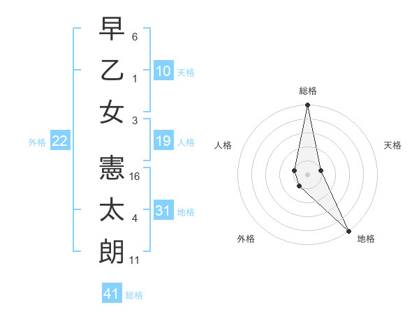 早乙女 憲太朗さんを姓名の画数から五運を鑑定
