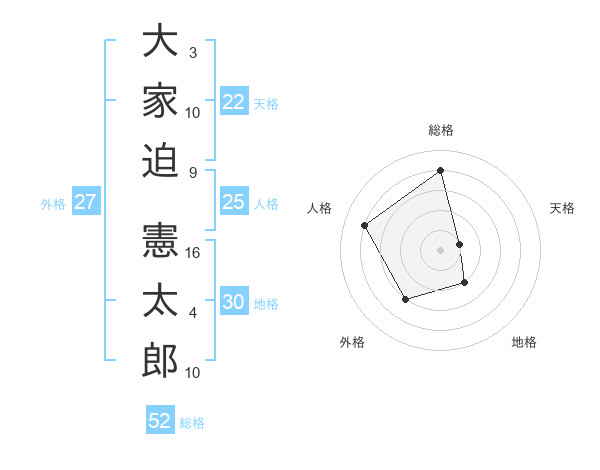 大家迫 憲太郎さんの総格は52画の4点!