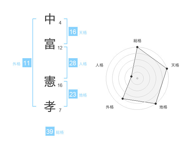 中富 憲孝さんの天格は16画の5点!