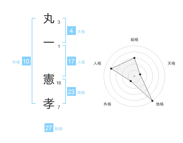 丸一 憲孝さんの総格は27画の3点!