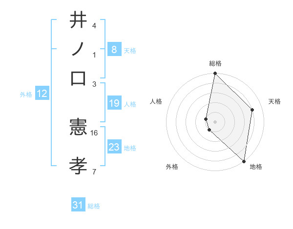 井ノ口 憲孝さんの総格は31画の5点!