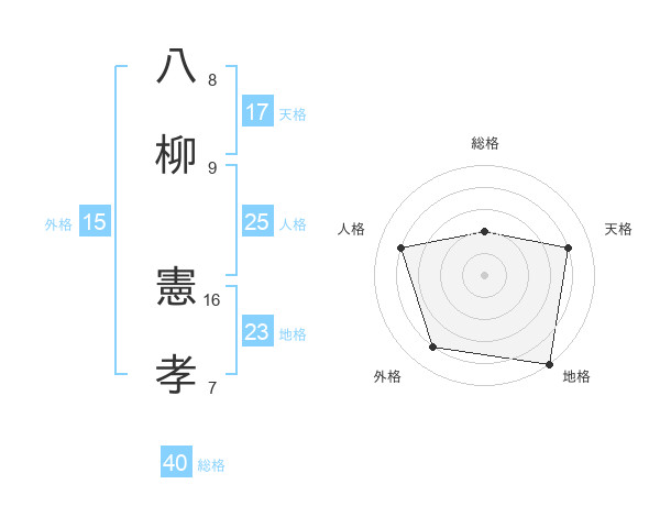 八柳 憲孝さんの地格は23画の5点!