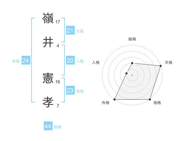 嶺井 憲孝さんを姓名の画数から五運を鑑定