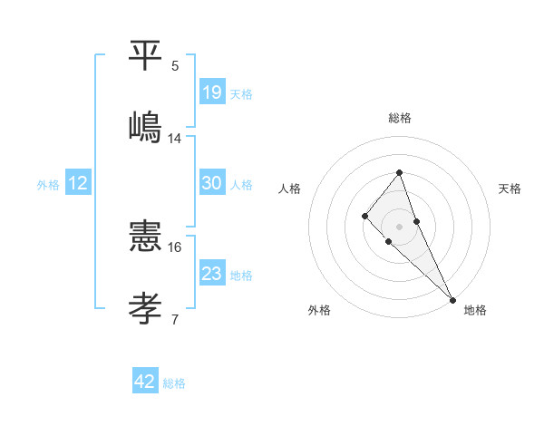 平嶋 憲孝さんの総格は42画の3点!