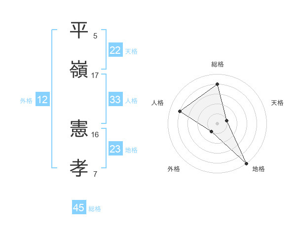 平嶺 憲孝さんの総格は45画の4点!