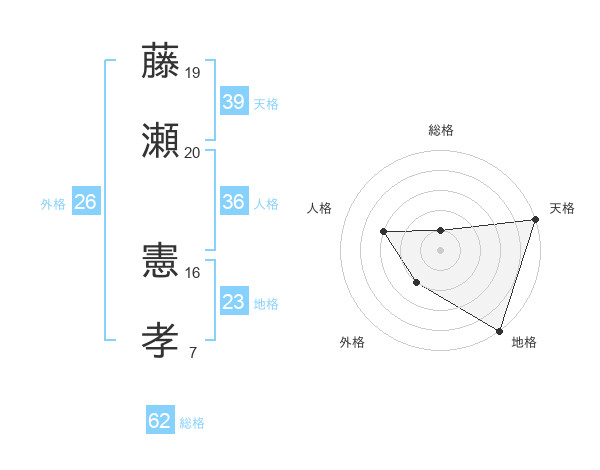 藤瀬 憲孝さんの天格は39画の5点!