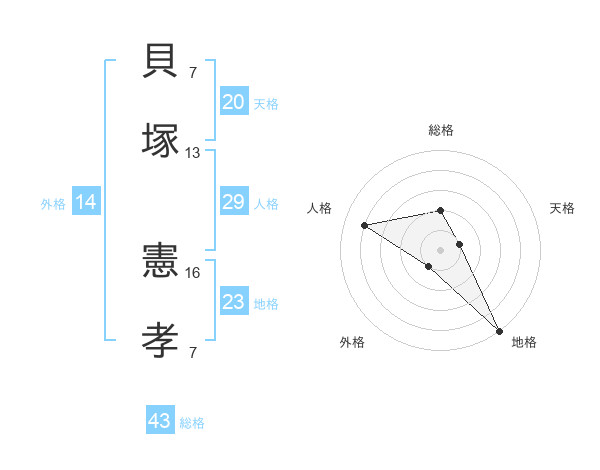 貝塚 憲孝さんを姓名の画数から五運を鑑定