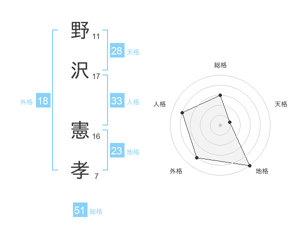 野沢 憲孝さんの総格は51画の3点!