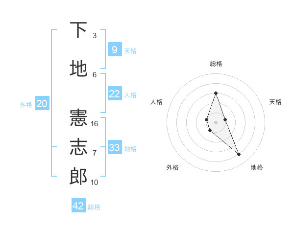 下地 憲志郎さんを姓名の画数から五運を鑑定