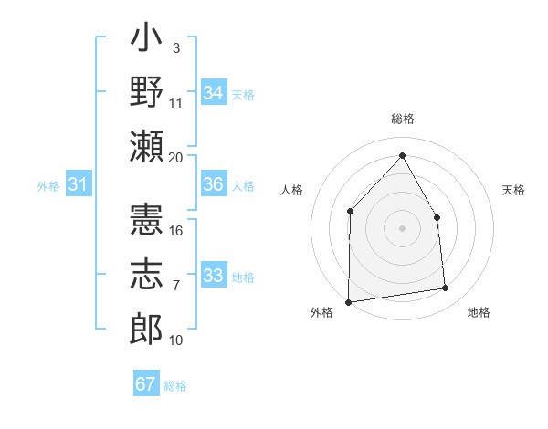 小野瀬 憲志郎さんを姓名の画数から五運を鑑定