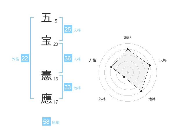 五宝 憲應さんの総格は58画の4点!