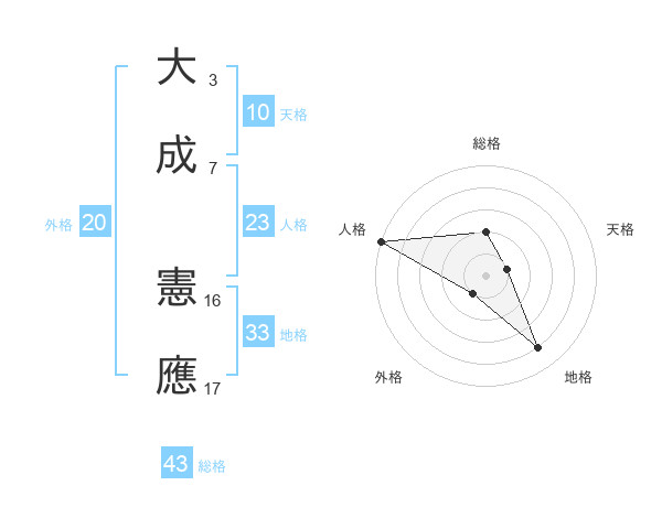 性格や才能などを表す2番目に重要な運勢です。人間関係や協調性、社会的な成功に影響します。主に20歳から50歳ぐらいまでの中年期の運勢を表します。
