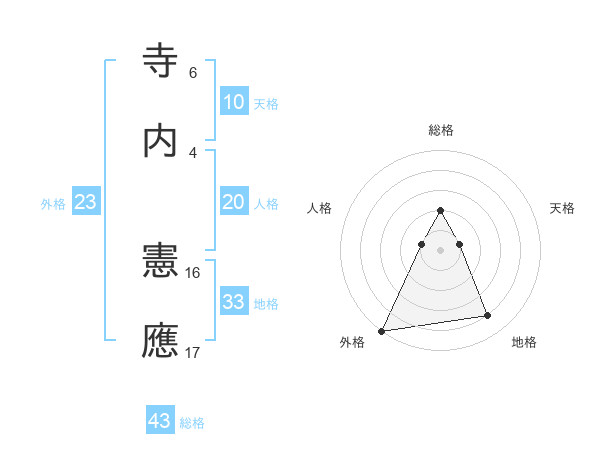 寺内 憲應さんを姓名の画数から五運を鑑定