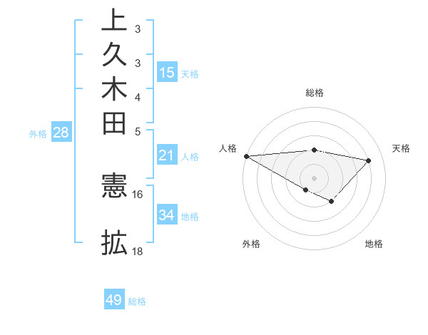 上久木田 憲拡さんを姓名の画数から五運を鑑定