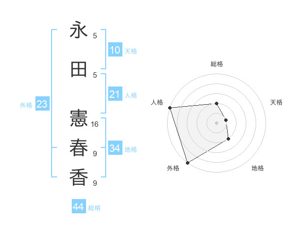 永田 憲春香さんを姓名の画数から五運を鑑定