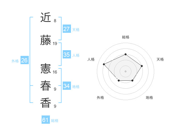 近藤 憲春香さんを姓名の画数から五運を鑑定