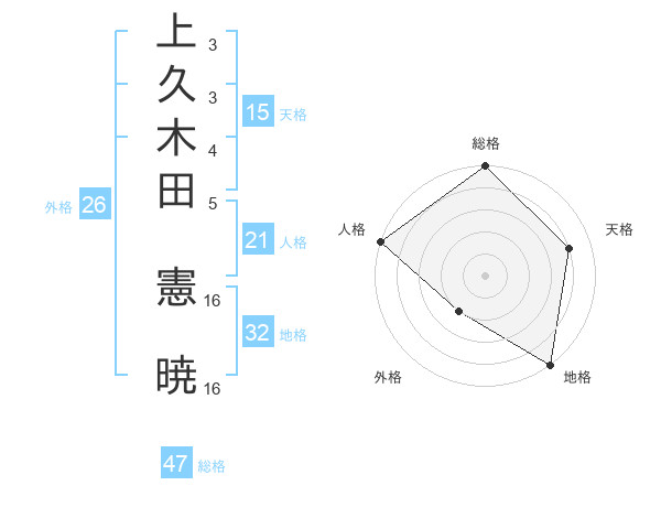 上久木田 憲暁さんを姓名の画数から五運を鑑定