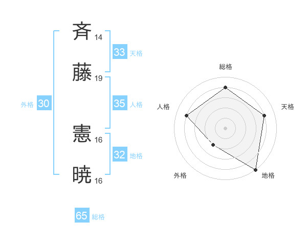 斉藤 憲暁さんを姓名の画数から五運を鑑定