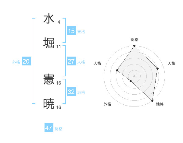 水堀 憲暁さんを姓名の画数から五運を鑑定