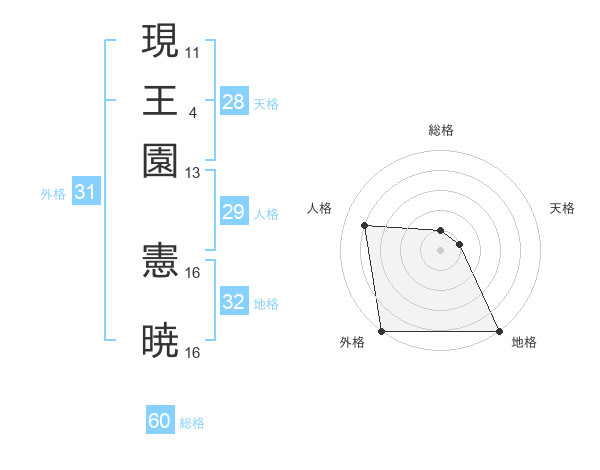 現王園 憲暁さんを姓名の画数から五運を鑑定