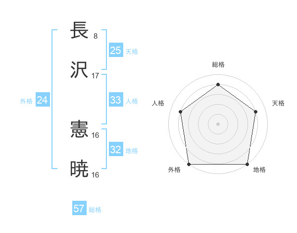 長沢 憲暁さんを姓名の画数から五運を鑑定