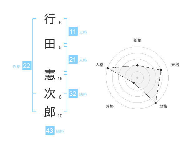 行田 憲次郎さんを姓名の画数から五運を鑑定