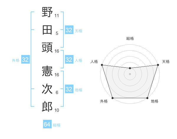 野田頭 憲次郎さんを姓名の画数から五運を鑑定