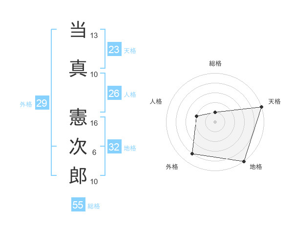 当真 憲次郎さんを姓名の画数から五運を鑑定