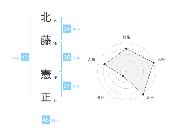 北藤 憲正さんを姓名の画数から五運を鑑定