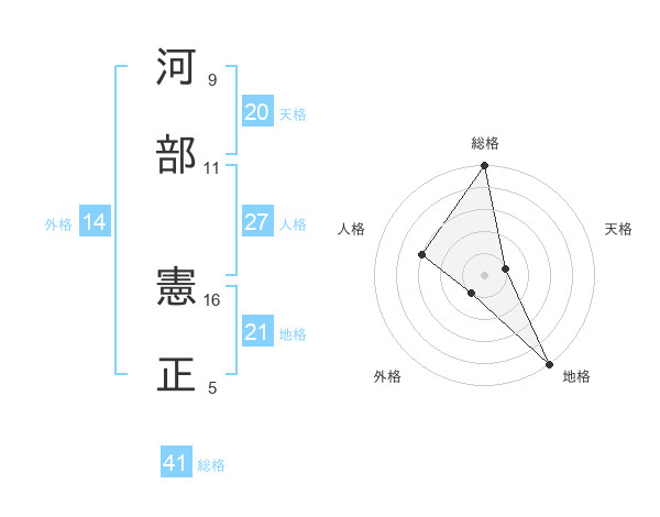 河部 憲正さんの総格は41画の5点!
