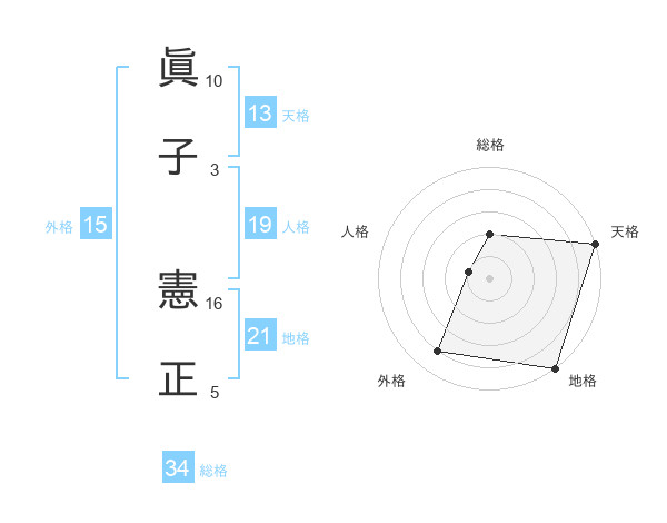 眞子 憲正さんの天格は13画の5点!