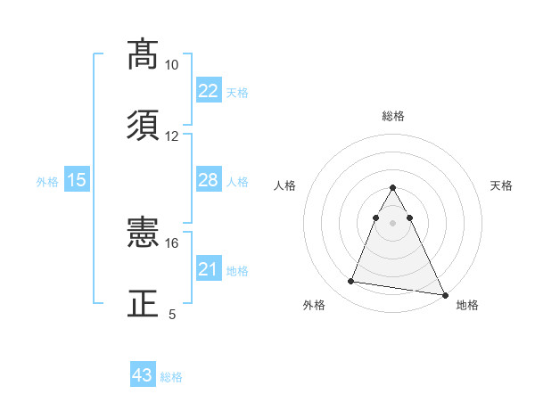 髙須 憲正さんの総格は43画の2点!