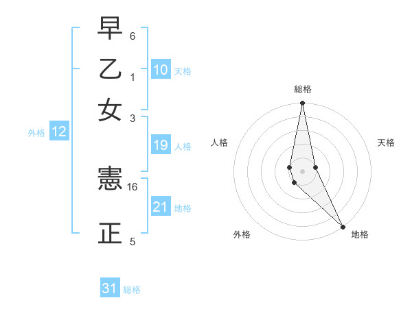 早乙女 憲正さんを姓名の画数から五運を鑑定
