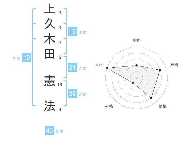 上久木田 憲法さんを姓名の画数から五運を鑑定
