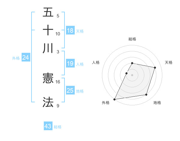 五十川 憲法さんを姓名の画数から五運を鑑定
