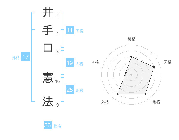 井手口 憲法さんを姓名の画数から五運を鑑定