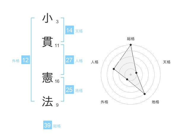小貫 憲法さんを姓名の画数から五運を鑑定