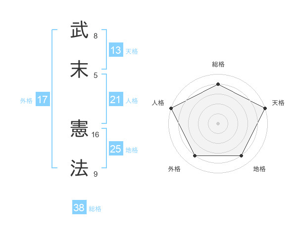 武末 憲法さんの総格は38画の4点!