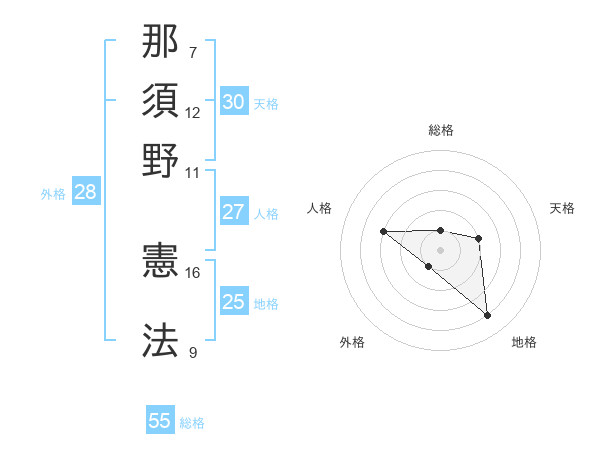 那須野 憲法さんを姓名の画数から五運を鑑定