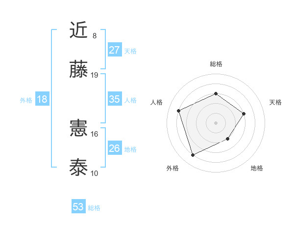 近藤 憲泰さんを姓名の画数から五運を鑑定